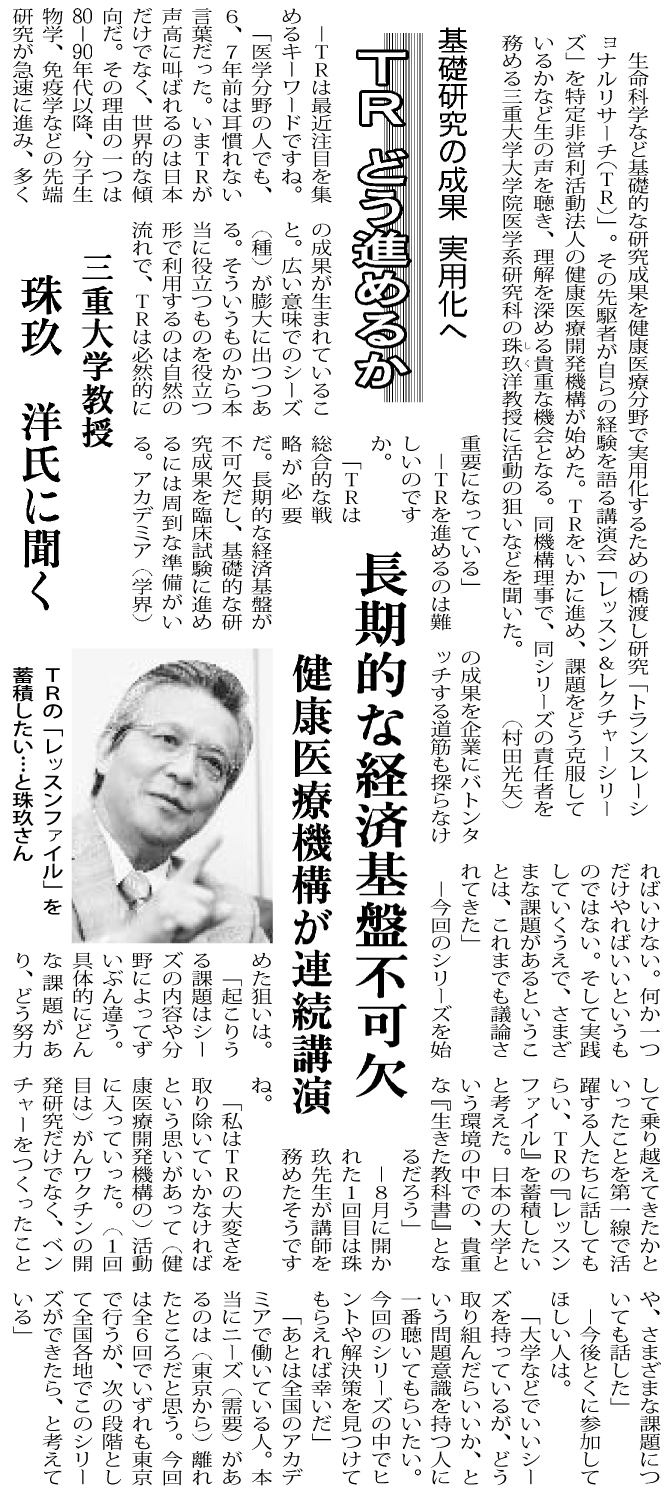 珠玖洋先生インタビュー(平成19年9月28日付)